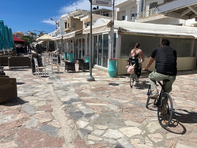 Découverte du vieux port et des rues piétonnes d’Ierapetra. La ville offre une promenade plate de 2 km adaptée aux poussettes ainsi qu’un centre commerçant et une vieille ville accessibles à pied.