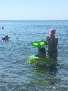 Le village est compact et facilement accessible à pied : plage, tavernes, supérettes et pharmacies sont à courte distance, pratique avec une poussette.