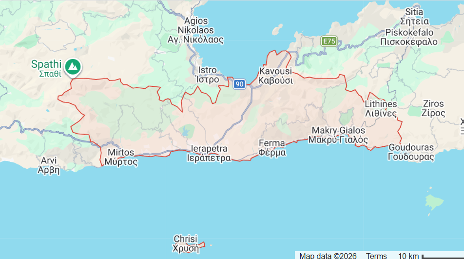 Le sud-est (district d’Ierapetra) est la 4ᵉ zone la plus peuplée de Crète et, contrairement à d’autres grandes villes, ne dépend pas principalement du tourisme.